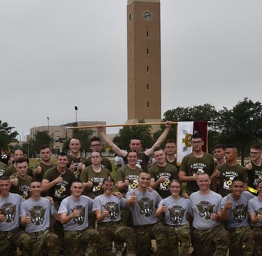 C-Battery shapes its cadets into a team of resilient, exemplary cadets. We uphold the greatest standards for ourselves, Texas A&M University, the Corps of Cadets, and the Fightin' Texas Aggie Band. We say "Bring the Danger" in everything we do and strive toward our three Marksmen Targets.